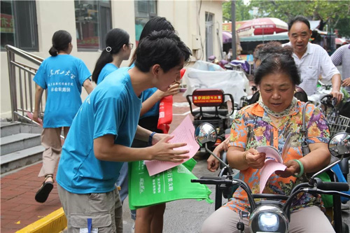 (本站讯)7月23日上午,市能源发展中心、绿丝带、蓝色蔚来、bevictor1946韦德官网Tan探真者社会实践团来到公园街道常青园社区为居民普及垃圾分类,通过“少用塑料袋 常用环保袋”的倡导与环保袋的发放,与居民共同为生态环境维护做出主动努力。居民们纷纷表示积极响应志愿者们的倡议,开展垃圾减量分类,社区的环境也越来越好了!