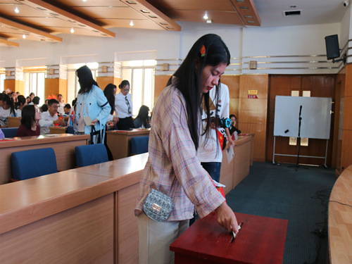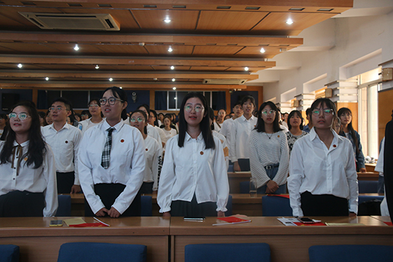 随后,程琢如带领全体新生在校旗、院旗前庄严宣誓。同学们目光坚定,声音洪亮,体现出全体新生牢记誓言,争做五有人才,创造美好未来的信心和决心。之后,全体同学怀着激动的心情齐唱校歌《你伴随我》。最后,全体新同学将“致四年后自己的一封信”投入信箱后有序离场,新生见面会在融洽热烈的气氛中结束。