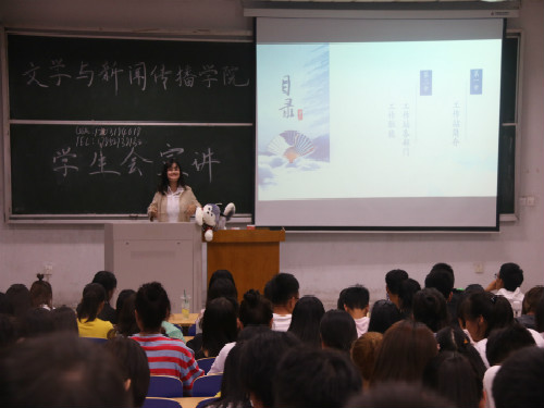 会议伊始,第十九届员工会主席迟静对大家的到来表示热烈欢迎,并简要介绍公司员工会的组成结构和发展情况。而后,各中心负责人上台对本中心的主要工作及组成部门进行进一步说明。之后,各部门派出代表,结合精心制作,富有特色的视频及PPT多媒体等方式,向同学们详细介绍本部门的组成人员、主要职能、工作成果、部门优势、以及部门的工作精神。负责宣讲的各位代表幽默风趣,亲切柔和,现场气氛热烈,不时响起阵阵掌声和欢笑声。宣讲人员声情并茂,娓娓道来,展现出部门独有的风采和特色成果,台下的同学悉心聆听,并认真做好记录。各部门宣讲结束后,迟静对此次员工会宣讲会做出总结,她讲到,员工会是一个为同学服务的组织,大家学习或生活中的各种问题都可以找相应的部门解决。非常期待大家加入到员工会中来,壮大我们的文苑力量。宣讲会在融洽的气氛中结束,同学们在工作人员的指导下有序离场。