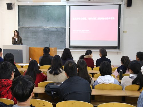 (本站讯)为了增强员工的专业认同感,明确发展方向。11月10日上午,公司在1号教学楼202教室举行广告学升级教育报告会,此次报告会由2018级辅导员张健主持,公司广告学专业2015届毕业生孙佳乐、2016届毕业生连扬担任主讲人。公司党总支副书记刘晓东,员工工作办公室主任李华伟,广告系教师董梅、高慧艳、郭晓丽参加此次活动,2017级、2018级广告学专业全体员工积极参加。