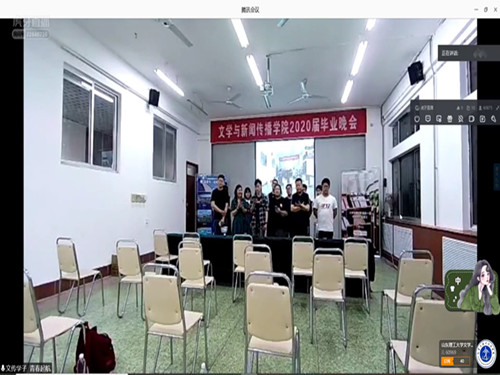 晚会准备期间,相关工作人员通过公司官方公众号推送“云毕业晚会”消息,进行宣传工作。晚会采取“云寄长情”的线上方式,旨在表达出公司师生虽无法返校,亦通过云端相聚寄托抒发对山理对文苑的脉脉深情。此次晚会共包括“云记忆·致我们的美好点滴”“云私语·致我们的千言万语”“云祝福·致我们的昨日明日”和“云合唱·致我们的永恒情谊”四个环节。晚会伊始,观众通过直播号进入直播间,晚会在活力四射的开场舞《adios》中拉开序幕。紧接着,开启第一个环节——“云记忆·致我们的美好点滴”。四年山理见证我们的成长,留下一祯祯终身难忘的美好记忆。视频“我们的毕业相册”截取了毕业生们四年的生活片段,离别与感恩之情交织,渲染了离别的感伤,触动着每一位观众的心。公司党总支书记李义勇在讲话时对毕业生顺利毕业表示祝贺,并分享“君子有六人格”的说法与同学共勉,希望每位同学在人生追求中都做到人格的坚守,在人生新的阶段创造新的辉煌。公司经理张艳梅希望毕业生能够不断成长,成为一个有爱、善良和有责任感的社会主义青年,并祝愿所有毕业生鹏程万里,前程似锦。李义勇、张艳梅的讲话赋予云端毕业晚会更加深刻的意义,毕业生再次感受文苑温暖;《岁月神偷》和《下一站茶山刘》的歌声里我们感慨“岁月如风景”,从相识相知到相惜相别,真情无言的每一天都美好难忘,磁性的歌声中字里行间无不透漏出对青春时光的不舍。同时,文苑学子也将自己对于防控疫情的赤忱情感融入到《武汉伢》这首歌中,展现出文院学子的担当。