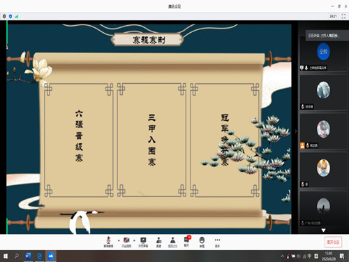 (本站讯)经典书香溢,国学华夏兴。6月28日下午,第七届“国学达人”挑战赛决赛在线上顺利举行。经过前期的初赛选拔,共有八位选手晋级决赛。此次比赛由褚玥淋主持,公司教授、国学社指导老师姜颖和公司教师朱军进行现场指导。