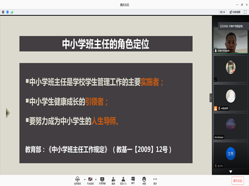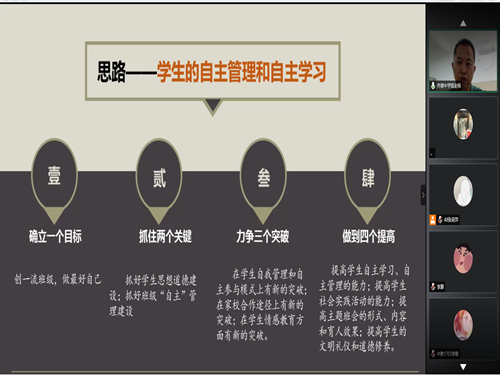 7月17日上午,第二期主题讲座活动开展。此次活动在腾讯会议举行,由钱宝玉主讲,张莉萍主持。活动伊始,张莉萍对钱宝玉进行介绍并表示热烈的欢迎。而后,由钱宝玉带来演讲--《我的班级管理之道》。钱宝玉的主要教学理念是一切为了每一位员工的发展,工作思路是员工的自主学习和自主管理,达到班主任和班级员工共同成长的效果。他谈到,我们要用真心实意关爱员工、用多彩活动凝聚员工、用家校合作共赢员工、用智慧管理发展员工,采取以分数、积分卡片、班级货币为基础的多种评价方式,促进员工的发展。之后,进入提问环节。对于如何处理某位同学被孤立的情况,钱宝玉回答到,首先,我们要从员工自身寻找问题并帮助其解决问题,在整体活动中找到该同学的特点;其次,要积极向其他同学了解情况,通过交流与沟通消除隔阂。同时,对于调位标准等细节问题,钱宝玉也一一详尽回答。同学们积极提问,认真记录,获益匪浅。最后,张莉萍对钱宝玉的精彩演讲表示感谢,此次“.师说新语”系列演讲活动顺利结束。