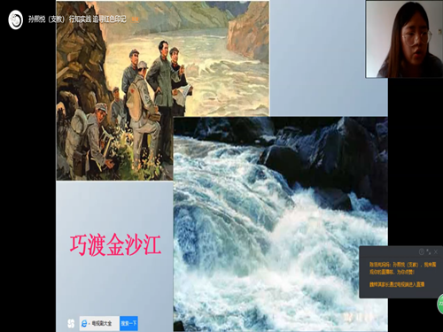 红色教育就是对员工进行爱国主义教育和革命传统教育,遵循寓教于乐的原则,结合重大节日和纪念日,对员工开展丰富多彩的“红色教育”。我国有着光荣的革命传统,而儿童又是国家的未来。对于正在成长的孩童们,红色教育不仅仅可以使他们了解这样一份可歌可泣的中国革命历史壮歌,也让可以激励他们养成良好操守、树立正确人生观,激发他们的爱国热情,让红色革命精神代代传承,也让中华民族的美好品德在无形中发扬光大。因而,“行知”实践团将此次支教活动的第三堂课主题设计为“追寻红色印记”,并将课程主要内容定为《义勇军进行曲》知识、长征故事、长征精神等。因为面对的是二年级的孩子,考虑到他们的年龄,主讲第三堂课的志愿者张明明更是在PPT中添加了故事图片、诗朗诵视频等,尽可能地使课堂更加生动、容易接受。尽管受到疫情的影响,但团队成员们仍希望可以用灵活有趣的线上课堂尽可能地打破时空限制,让红色教育更加深入孩子们的成长,使一颗颗稚嫩的心灵从小便受到红色文化之水的灌溉。