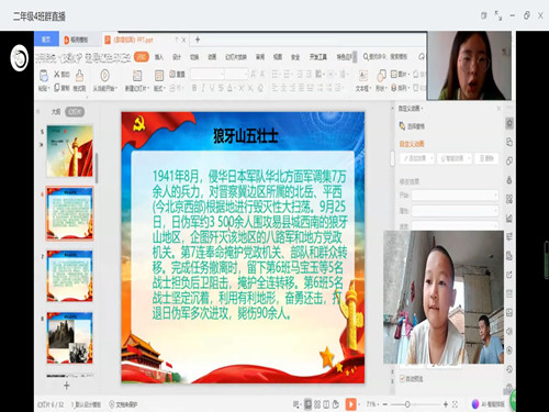(本站讯)追寻红色印记,传承红色基因。为红色精神赓续绵延,传承红色精神的不朽信念,培养同学们的爱国主义精神,8月5日下午,公司“行知”社会实践团在山东省淄博市淄川区洪山镇洪山小学的线上支教第十课——“追寻红色印记”正式开始。此次课程由志愿者张明明主讲,洪山小学二年级全体同学参加。