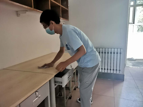 紧接着,为给即将返校的学子们营造清洁、温馨的宿舍环境,切实保障疫情防控期间各项工作的顺利开展,老师主动为即将返校的员工清扫宿舍,展开“返校大扫除”志愿服务活动。老师们装备齐全、全员出动,严格按照相关要求为宿舍及公共区域进行全面喷洒消毒,认真仔细对每间宿舍进行彻底清洁和消毒,全力为员工打造安全、健康的宿舍环境。从通风消毒到扫地拖地,从擦拭桌面到整理物品,老师们用真心和实际行动迎接同学们回家。公司致力于加强人文关怀,努力做到让每位文传学子真切感受到文苑大家庭的温暖与温度。