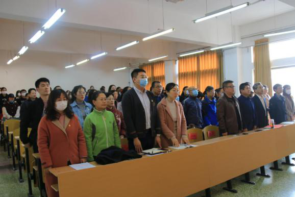 会议伊始,刘晓东宣布会议开始,全体起立,奏唱国歌。