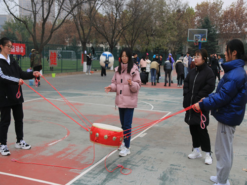 此次比赛形式多样,分为团体项目和个人项目。活动伊始,主持人举行开幕式。主持人对各位选手的到来表示热烈欢迎并预祝大家取得好成绩。比赛正式开始后,首先进行团体项目,共有六项,分别是击鼓传球、谁与争锋、请君入瓮、背投入筐、不倒森林和带球走步。在背投入筐比赛中,两位选手一人向后扔沙包,一人持筐接。扔沙包的选手卯足力气向后扔出沙包,接沙包的选手高高跳起接住沙包,扔完一筐紧接着一筐。他们奋力拼搏,争先恐后,分秒必争。现场响起一阵阵加油声,气氛热烈。在击鼓传球比赛中,选手们通力合作,将放在鼓面上的排球连续颠起,并根据排球的移动不断调整力度和角度,这不仅考验了参赛者的身体协调能力,而且对参赛者的耐力提出挑战。参赛者们依靠自己较强的合作意识和能力完成挑战,表现出色。而后,进行个人项目。个人项目分为一分钟跳绳和一分钟踢毽子两项,每个项目仅限一人参加。选手们飞快摇动着跳绳,在绳子落到脚下的一瞬间抬腿,绳子从脚下一闪而过,姿态似雄鹰展翅,轻如燕飞。此次趣味运动会赛事精彩纷呈,同学们积极参与,用实际行动展现了积极向上的个人风采和团队协作。此次比赛在同学们的欢声笑语中顺利结束。