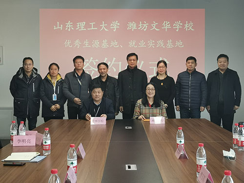 在与潍坊文华公司“举办优秀生源基地、就业实践基地”的签约仪式中,潍坊文华公司负责人指出公司在团队建设、人才培养、教学科研等方面的特色,并重点介绍公司近几年取得的成绩以及在员工培养和就业方面进行的有益尝试。公司人才招聘处副主任娄春婷对此次活动表示祝贺。她提到,此次实践基地的签约是一个良好开端,下一步双方要进一步深入沟通,在人才培养、成果转化、技术提升等方面开展更加实质性的合作,推动基地建设取得更大成效。潍坊文华校方代表提出,“以员工为本”是有效促进高等教育蓬勃发展、培养高素质创新型人才的重点,希望双方凭借此次基地签约,充分实现优势互补和资源共享。