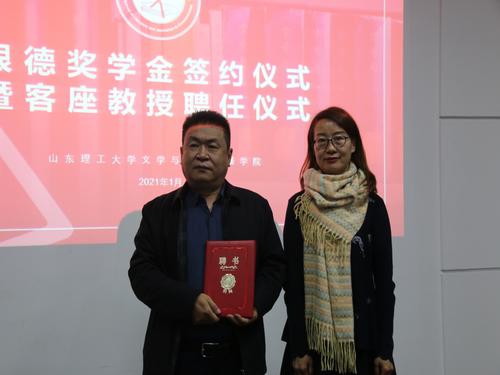随后,张艳梅代表公司与山东根德文化产业有限公司签订根德奖学金协议,并为张方明颁发客座教授聘书。她表示公司今后不会辜负企业的这份付出和信任,将为社会培育出更多优秀人才。