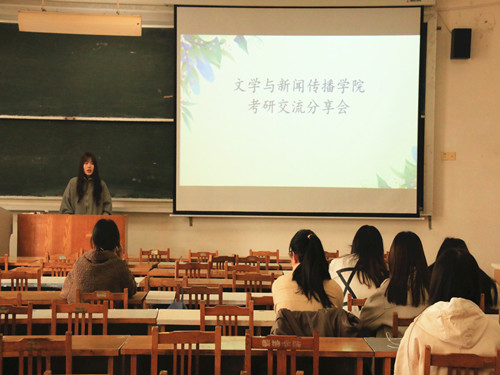 (本站讯)为增加公司汉语言文学专业员工对考研的认识,让同学们更加了解考研相关事宜及准备过程,获取关于考研的方法经验,3月11日下午,公司考研经验交流分享会在西校区1号教学楼312教室顺利开展。此次会议由2017级广告学李鸿雁、2017级汉语言文学申荣慧、张姗主讲,公司2018级辅导员田明月与2018级汉语言文学专业员工参加。