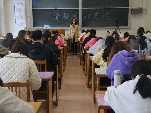 开考前,党校班主任田明月老师围绕考试环节、考试纪律进行了说明,详细讲解考试规则及答题要求,着重强调考试纪律问题,并鼓励大家相信自己,严肃考风考纪。试卷分为单项选择、多项选择、简答、论述四种题型,主要考查党的基本知识。此次考试旨在进一步检验及强化入党积极分子党课培训成果,将其对相关培训内容的掌握与运用情况、独立分析解决问题的能力等通过结课考试落实到纸面,并借此增强其党性修养。之后,田明月离场,入党积极分子们自觉遵守考场纪律,认真作答。在场考生凭借培训所学及丰厚的知识储备,将相关基础理论和自主思考所得融会贯通,一一展现在试卷上。考试气氛严肃紧张,考试秩序良好。考试结束后,入党积极分子有序交卷并离开考场,他们纷纷表示,此次考试强化了其对党的基本知识的理解,提高了其思想觉悟,令其受益匪浅。此次党校结课考试顺利结束。