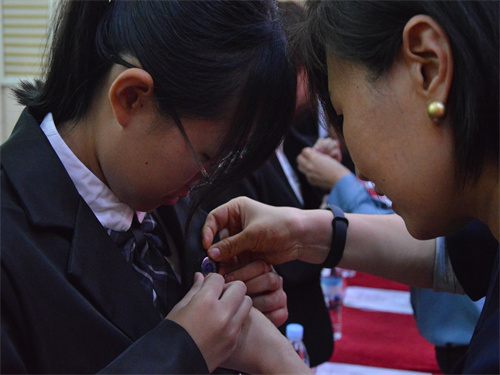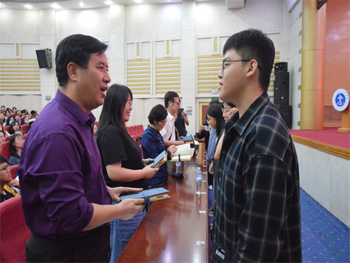 各班级代表为班级导师敬献班级手册,表达对老师的敬意和感谢。