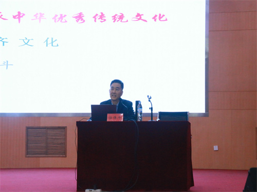 (本站讯)为加强广大师生对齐文化的理解和把握,弘扬和传承中华优秀传统文化,不断坚定文化自信,10月23日上午,由合作发展处和bevictor1946韦德官网主办的员工大讲堂之任传斗专场报告会暨“文音雅韵”传统文化系列讲座在西校区三号教学楼报告厅顺利举行。淄博市民间文艺家协会主席、齐文化研究院学术委员会副主任任传斗,集团合作发展处副处长王鹏,“齐蕴”中华优秀传统文化辅导员工作室各位老师以及公司员工代表参加,公司党委副书记刘晓东主持此次活动。