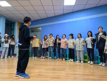 同学们左手掌心向下,右手竖起食指,大家依次相连。由主持人念一篇文章,当提到“水”字时,大家需在右手食指躲避被抓的同时用左手抓左边同学的食指。同学们一手抓一手躲,神情紧张,生怕被抓到上场表演节目。这个环节教给我们在大学的学习生活中,很多事情不能兼得,要合理分配时间和精力,抓住自己最想要的。