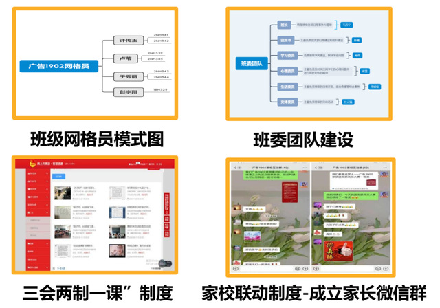 针对班级情况,制定了班级日常管理制度等一系列规章制度。始终坚持班团一体化流程,设立特色家校联动制度并成立微信家长群,携手家长同心抗疫。此外,班级共有29名成员在校院级员工组织任职,汇聚整合资源优势,更好地建设班级。
