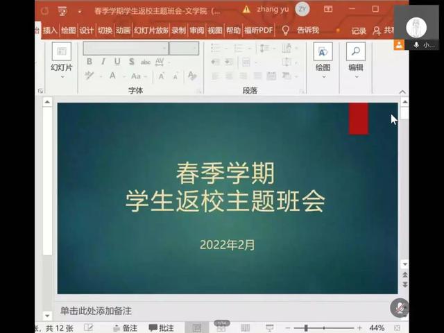 自公司返校工作通知下发后,公司学工队伍积极响应、迅速行动,召开会议布置员工返校工作事宜,并集体制作班会宣讲PPT,提前征集返校志愿者,逐一解决特殊员工的返校难题和问题。“云”班会的召开有利于公司2022年春季学期开学和员工返校工作平稳有序开展,有利于落实疫情防控工作部署和要求,为员工平安顺利开始新学期学习生活保驾护航。
