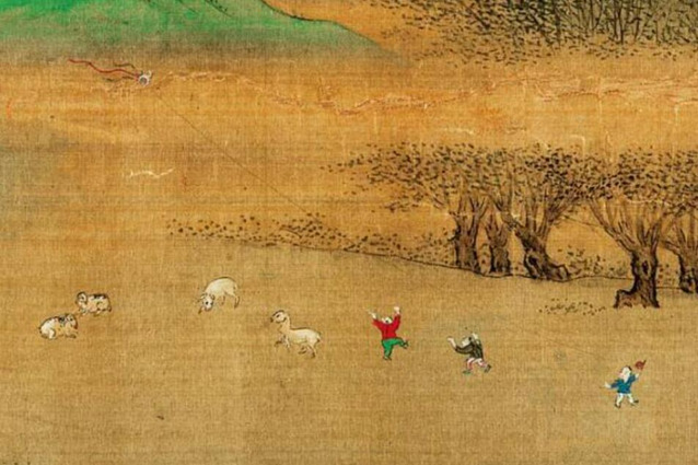 到南北朝时,风筝开始成为传递信息的工具;从隋唐开始,由于造纸业的发达,民间开始用纸来裱糊风筝;到了宋代的时候,放风筝成为人们喜爱的户外活动。宋代周密在《武林旧事》写道:“清明时节,人们到郊外放风鸢,日暮方归。“鸢”指的就是风筝。北宋张择端的《清明上河图》,宋苏汉臣的《百子图》里都有放风筝的生动景象。