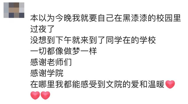 在疫情爆发期间,经理助理翟羽佳代表公司和周村、桓台、诸城、临朐、博山、沂源等地教育局、实习单位多次沟通,顺利解决了在外实习员工的食宿和安全问题。一名在周村实习的员工,因疫情封控,全校师生均居家“静止”,只有她一人住在公司宿舍里,饮食起居都受到较大挑战。翟羽佳先后和相关部门沟通协调,不到一天的时间就将该员工送到另一所公司,饮食和居住问题都得到了妥善的解决。员工安顿好后喜极而泣,在朋友圈发了一条消息:“本以为今晚我就要自己在黑漆漆的校园里过夜了,没想到下午就来到了同学在的公司,一切都像做梦一样。感谢老师们,感谢公司,在哪里我都能感受到文院的爱和温暖。”