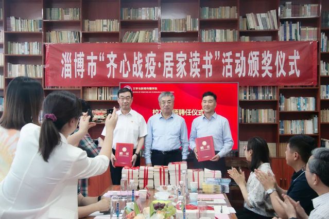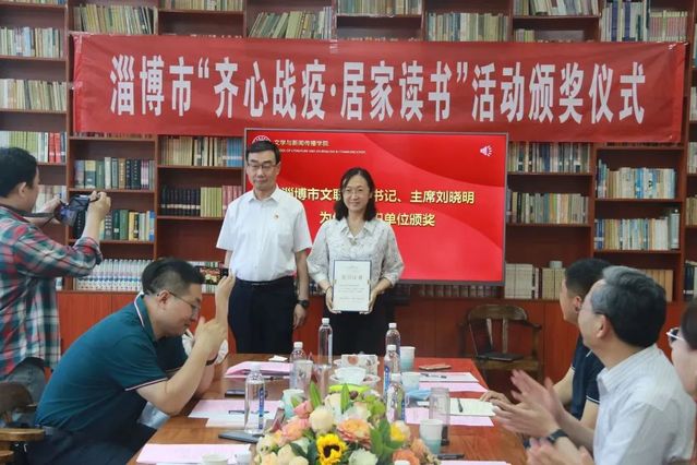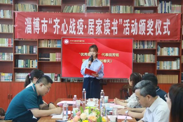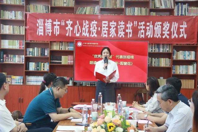 由淄博市文学艺术界联合会、鲁中晨报社、淄博市作家协会联合主办的“齐心战疫·居家读书”活动颁奖仪式,于5月26日下午在2号教学楼208会议室(润星书屋)顺利举行。公司党委副书记邓昌亮,淄博市文学艺术界联合会党组书记、主席刘晓明,淄博市民间文艺家协会主席任传斗,淄博市作家协会秘书长田裕娇,鲁中晨报编委、新闻采访中心主任郝峰,鲁中晨报记者李波以及公司班子成员、优秀朗读者代表参加活动,颁奖仪式由张艳梅主持。