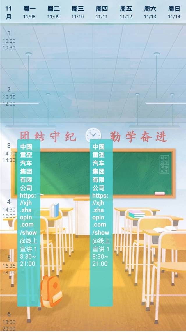本周的的就业信息比较少。在周一和周三,中国重型汽车集团有限公司将举办线上的宣讲。该公司是一家涉及重卡、盖中卡、特种车等全系列商用车的汽车制造公司。制造技术先进,公司实力雄厚。对该公司有兴趣的同学们不要错过招聘时间啊!