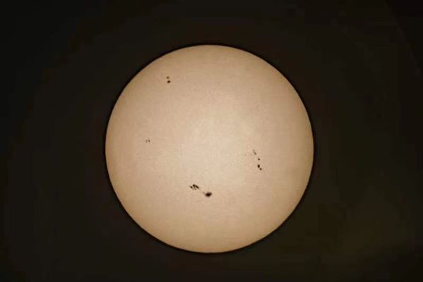 白天,教学楼前排起了长长的队伍,孩子们依次从一方小小的目镜里观测太阳。镜头里的太阳不似天空中耀眼,多了几分柔和。几处清晰可见的太阳黑子,更是引起了孩子们的阵阵惊叹。