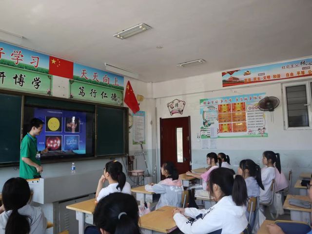 张老师将理论知识与实践结合,在课堂上为同学们讲解光学天文望远镜的功能以及如何使用天文望远镜,在课下则展开了一系列观测活动,让孩子们亲自体验天文观测。
