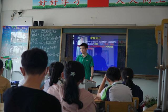 在之后的课堂里,张老师教授的内容难度逐渐加深。他以比邻星与太阳的距离为例,为孩子们讲解如何在浩瀚的宇宙中确定恒星间的距离。他通过教授太阳的周年视运动,让孩子们明白了四季星空何以会变化。在教授过程中,张老师注重融合孩子们已经学习过的数学、地理等知识,使孩子们更加便于理解课堂内容。