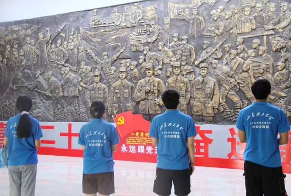 在展馆一楼,实践团成员面向抗日浮雕表示敬意, 深刻地体会到革命前辈的不怕艰苦,顽强拼搏的抗日精神。随后,实践团成员前往烈士祠,缅怀英勇的抗日烈士,并向他们致以最崇高的敬意。