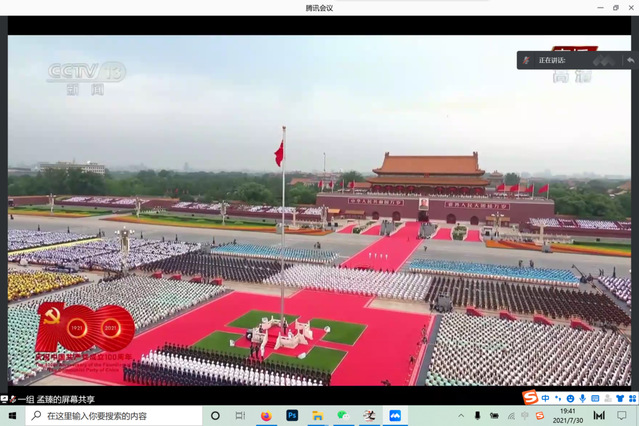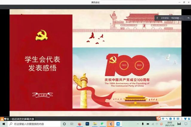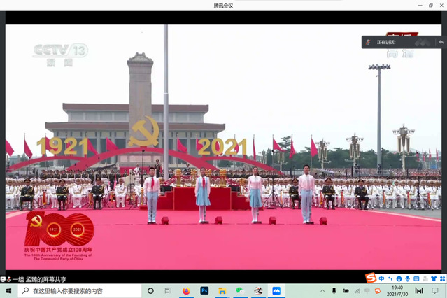 会议伊始,孟臻带领培训班成员观看建党百周年大会回放。中国共产党立志千秋伟业,百年正是风华正茂。回顾历史,我们豪情万丈;展望未来,我们心潮澎湃。中国共产党与人民同甘共苦,与人民团结奋斗,始终坚持全心全意为人民服务的宗旨,始终保持同人民群众的血肉联系,凝聚起众志成城的磅礴力量,在建党百年之际,已经团结带领中国人民创造了历史的辉煌。今天的成就为实现中华民族的伟大复兴梦创造了条件,奠定了基础。中国人民当不忘初心,牢记使命,一定会探索出新的篇章,创造更伟大的辉煌。