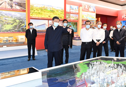 展示我国科技水平和制造能力跃升的自主研发关键产品实物、模型,反映功勋荣誉表彰体系日益丰富完备的勋章、奖章,国家级重大出版项目《复兴文库》,生动再现脱贫攻坚和抗击新冠肺炎疫情历史进程的实物、图表、图片,“五基”协同天空地一体化生态环境立体遥感监测体系模拟沙盘,武器装备模型,呈现总体国家安全观深刻内涵、党内法规制度建设成果的展板、实物,彰显京津冀协同发展成就的立体电子地图,展现规划建设、轨道交通和科技创新等方面亮点成果的粤港澳大湾区沙盘……一件件实物模型、一段段生动视频、一幅幅图片图表,吸引了习近平等领导同志的目光。他们不时驻足观看,听取讲解,询问有关情况。
