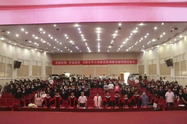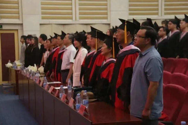 在雄壮的国歌声中,学位授予仪式拉开帷幕。