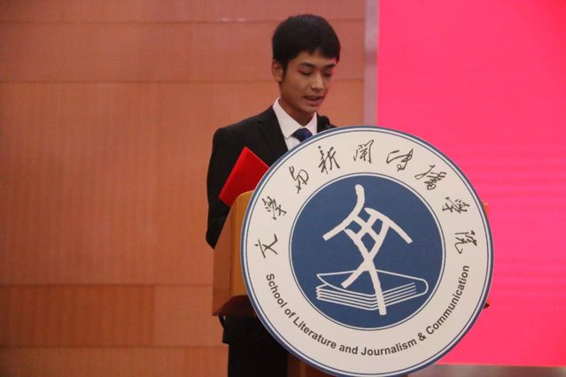 新生代表田一阁发言。他表示将积极践行“厚德、博学、笃行、至善”的校训,秉承“ 谦谦君子,温润如玉”的院训,坚定目标,严于律己,持之以恒,砥砺前行,争当新时代的有为青年。