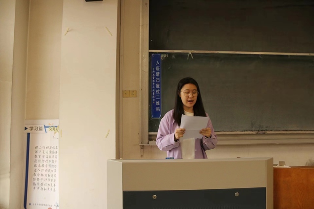 活动第一项,张心雨同学为大家解读了本次文明宿舍活动月的具体活动方案。她说到此次活动月将贯彻“管理育人”和“文化育人”的公寓理念,以员工为主体,以管理和文化两部分为载体,推进“一站式”公寓建设,并提出在文化活动方面,社区服务部将联合学习部、文体部推出类型多样的二课文化活动。在二课文化活动结束之后,将于六月中旬举办闭幕式暨优秀宿舍表彰大会,选拔优秀宿舍。最后,她明确了宿舍卫生标准和优秀文明宿舍奖项的具体内容。