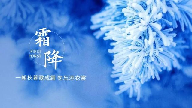 霜降,是二十四节气中的第十八个节气,秋季的最后一个节气。斗指戌;太阳黄经为210°;于每年公历10月23—24日交节。进入霜降节气后,深秋景象明显,冷空气南下越来越频繁。霜降不是表示“降霜”,而是表示气温骤降、昼夜温差大。就全国平均而言,“霜降”是一年之中昼夜温差最大的时节。
