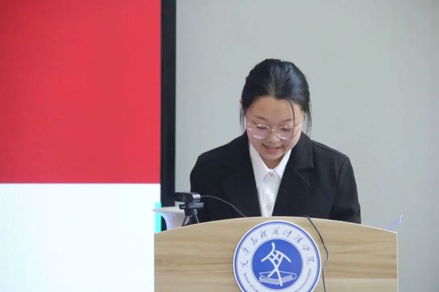 公司员工代表吕琪发言,她以自身为例,向大家讲述广告系的学习对于自己的切实影响,并从职业素养、思想品德、专业能力等方面提出了几点建议,号召同学们立大志、明大德、成大才、担大任,做担当祖国复兴大任的时代新人。