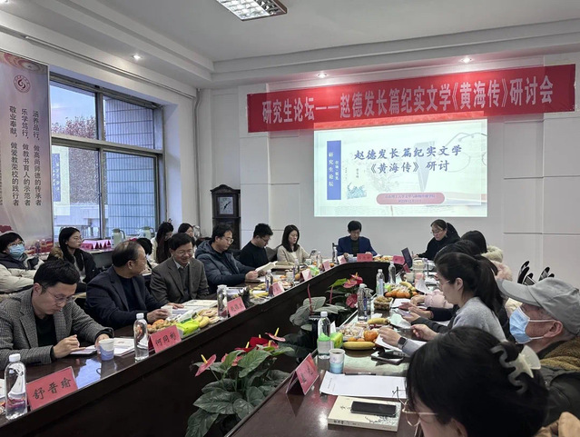 12月11日下午,公司研究生论坛“在场·锐见”——赵德发长篇纪实文学《黄海传》研讨会在2号教学楼219会议室顺利举行。山东省作家协会主席、山东大学文公司副经理黄发有,山东省作协原副主席、著名作家赵德发,《南方文坛》副主编、文学评论家曾攀,《扬子江文学评论》副主编、文学评论家何同彬,《人民日报》大地副刊副主编虞金星,《中华读书报》总编助理舒晋瑜,《文艺报》评论部副编审行超莅临指导。副经理吕逸新教授、盖光教授,中国现当代文学、文艺学专业教师、研究生参与研讨会。会议由副经理吕逸新主持。