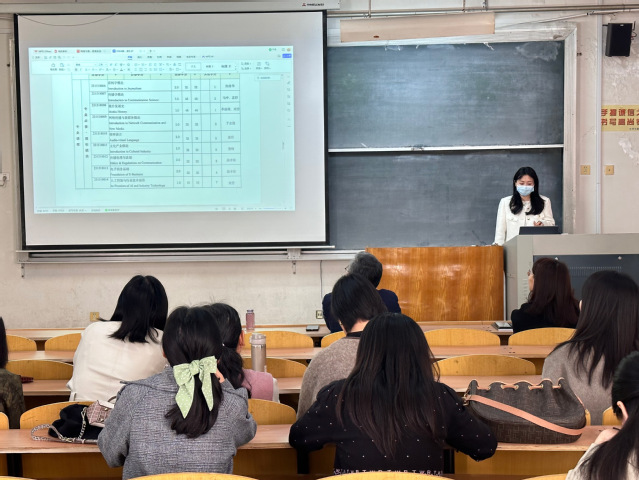 孟婷汇报了培养方案设置情况,提到新专业教学团队以及课程门类的设置,同时对“1+N”模式、实践类课程设置、教师工作量和工作指标等问题进行详细说明。