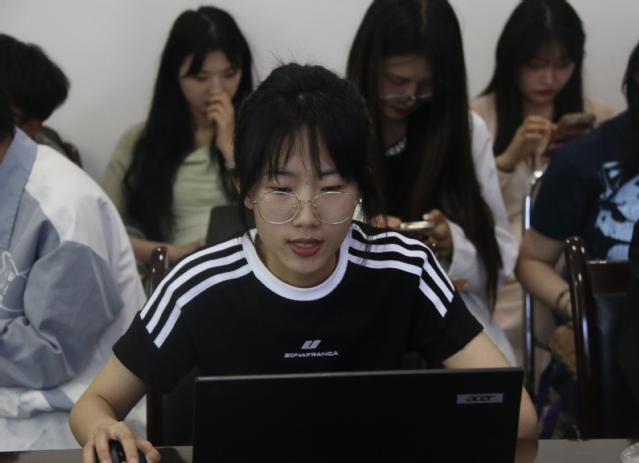 郑明晓汇报题目为《文学地理学视阈下李清照南渡词研究》。她从文学地理学的视域观照李清照的南渡词创作,梳理李清照笔下的特定意象,把握其在南渡期间的情感流向和思想巨变,进而反映李清照作为南渡词人所具有的精神面貌。在研究价值与意义方面,她认为从作品出发,能够探讨李清照的人生行迹对于词作的影响,有助于理解李清照创作背后蕴含的地理因素,认识李清照南渡词在文学与地理学方面的双重价值。