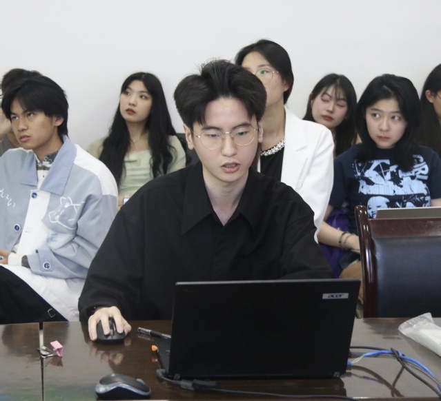 娄纯滢汇报题目为《谢灵运诗歌创作分期与审美倾向新论——从老庄典故所反映的“轻老重庄”现象谈起》。她从研究背景及现状、论文结构与内容、不足之处三个方面进行论述。首先,她在“谢灵运与《庄子》的关系”和“谢灵运与《老子》的关系”研究背景与现状下,提出自己的新论;在论文结构与内容方面,她将文章分为“轻老重庄”现象、“轻老重庄”与创作分期、“轻老重庄”与审美风格的呈现三部分。同时,她也认识到论文仍存在结构不够合理、行文逻辑混乱等问题,表示在今后会努力修改完善论文。
