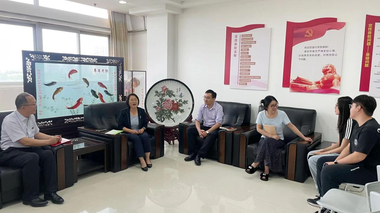 在座谈中,双方进行实习生工作交流研讨会,郑兆青、公司中文系主任李贺、中文系教师孙宝新和在淄博五中实习的公司员工及其指导教师进行交流研讨。