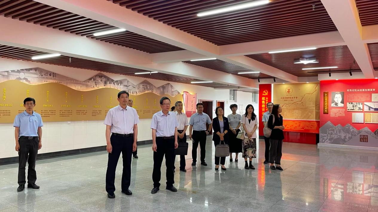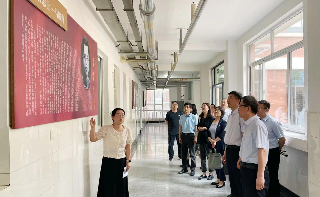 郭庆兵一行参观了淄博五中党建品牌《耀南铸魂》教育长廊,深入了解了马耀南烈士革命事迹及五中校史渊源。