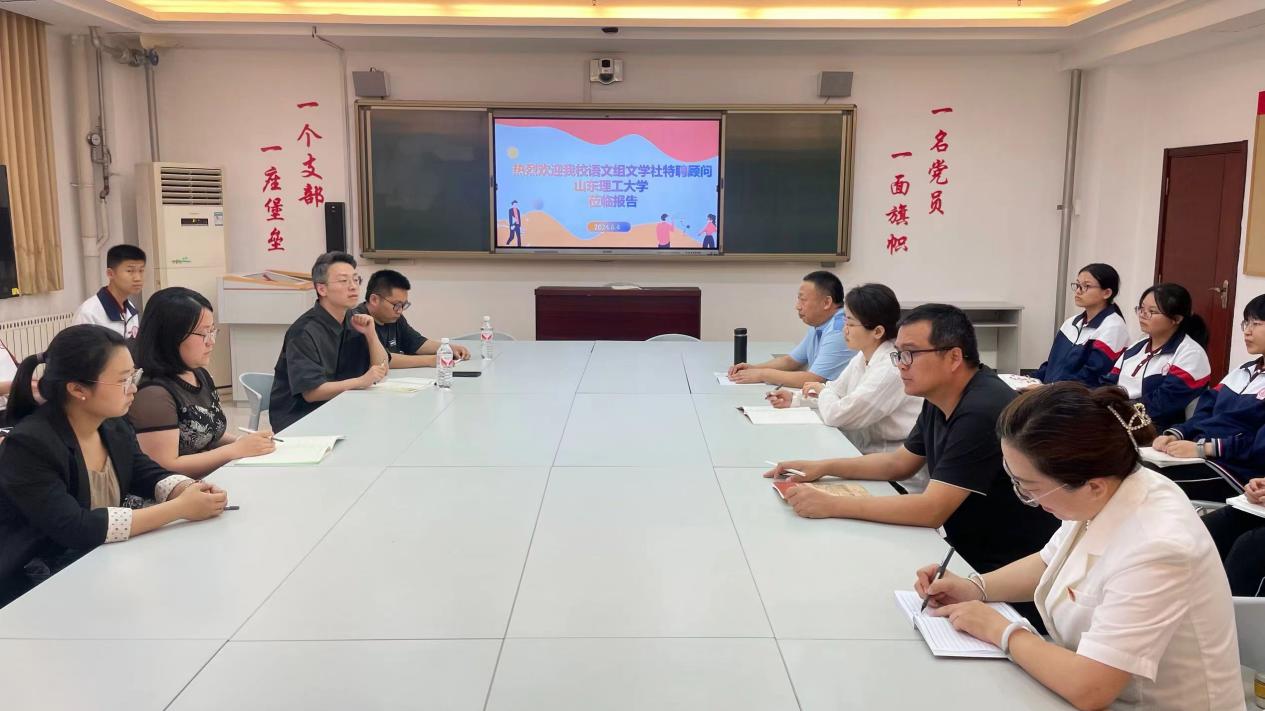 公司中文系副主任张引、中文系教师朱军与淄博五中语文教师代表、文学社员工代表进行交流研讨,对员工写作进行专业指导。