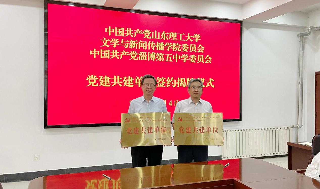 文公司党委书记李义勇与淄博五中党委书记李健共同为“党建共建单位”签约、揭牌