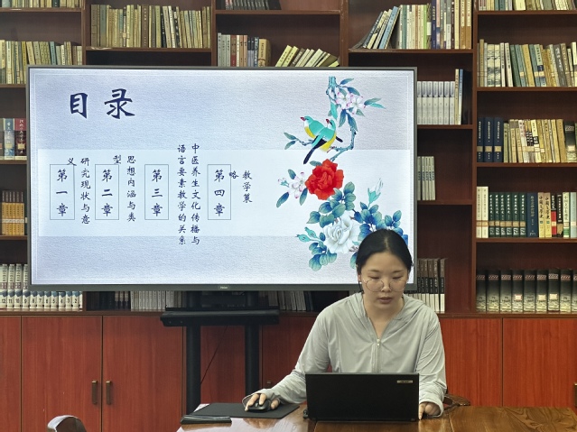 李浩佳的汇报题目为《中医养生文化融入对外汉语教学研究》。她指出,中医养生文化以其教育价值、实用价值和文化传播功能成为对外汉语教学的重要内容。她通过挖掘中医养生文化的思想内涵,探讨中医养生文化与语言要素的内在联系,构建将中医养生文化融入对外汉语教学的教学策略,以实现语言教学与文化传播的双重目标。