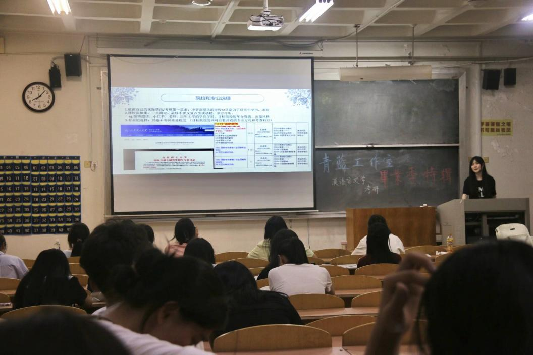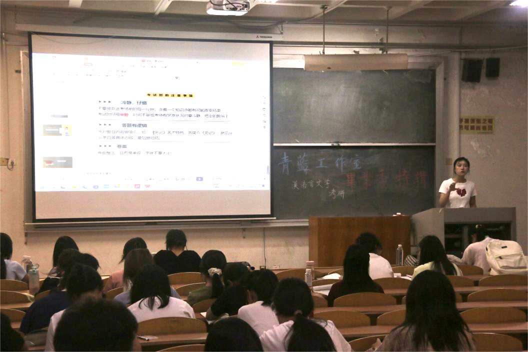 在汉语言文学考研专场中,分别考入南京师范大学、青岛大学、山东师范大学、bevictor1946韦德官网的张书萌、李雪雁、颜丙卿、陈晓娟担任主讲人,从汉语言文学专业考研的备考方法、公司与专业选择、具体科目的学习方法、心态调整等方面展开分享。张书萌主要分享了考研公司的阅读参考书目和考试考点,推荐了文学专业的的相关考研书籍,讲到考研要进行信息收集并且调整好心态。李雪雁从专业和公司选择、备考心态、自制力以及答题方法等方面作出详细讲解,强调考试要冷静仔细、答题有逻辑、注重卷面。颜丙卿分享考前准备的工作和方法,告诉同学要注重规划英语和专业课的复习。陈晓娟分享初试的复习准备和初试政治、英语以及专业课的复习经验和备考心得,建议同学们要建立自己的复盘笔记本并且调整好心态。