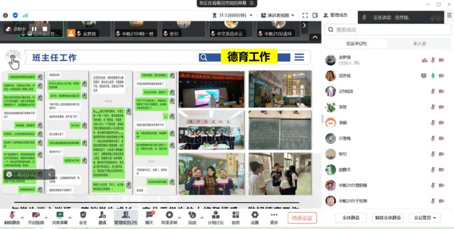 7月11日晚,公司2021级优秀实习生推选工作在腾讯会议线上顺利进行。公司教学科科长岳庆云、中文系主任李贺、中文系副主任张引、金梦鸽担任此次活动的评委,由各组指导老师推选出的26名2021级师范实习生参加了本次活动。活动由金梦鸽主持。