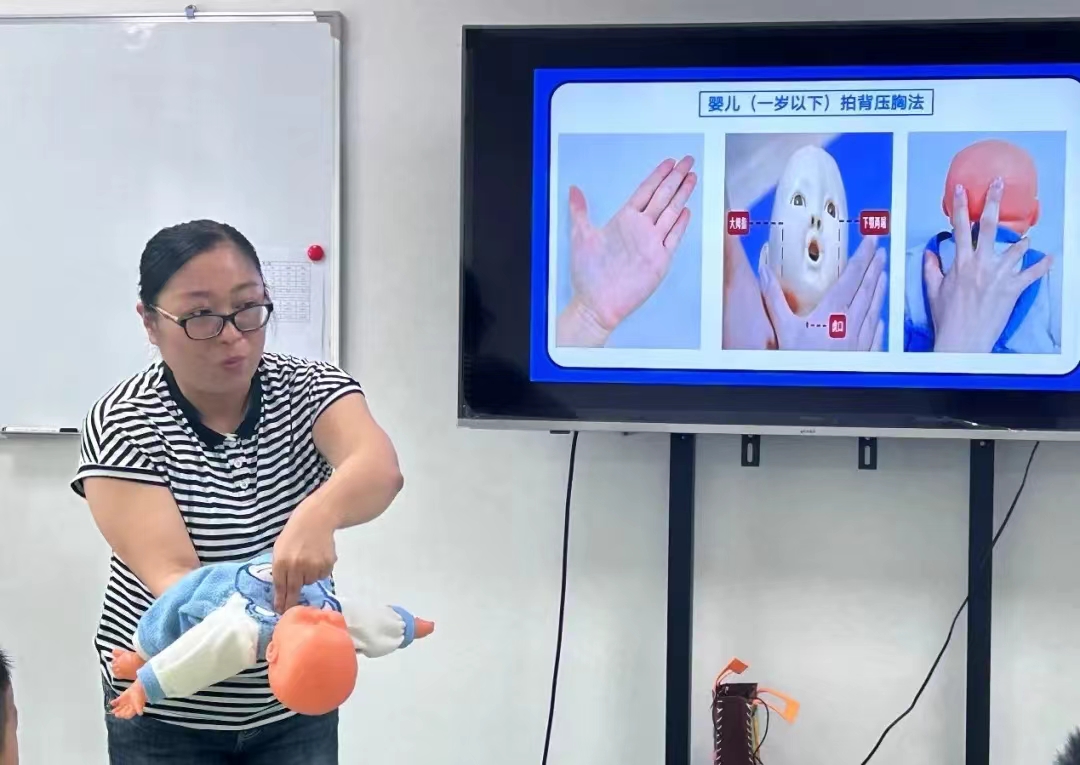 值得注意的是,医护人员用生动的语言和形象的演示,向员工们介绍完心肺复苏(CPR)的理论知识后,员工们在班主任的带领下有序进入实操室,医护人员首先为员工演示如何对昏迷受伤人员进行心肺复苏,详细展示了如何判断意识、呼叫求助、开放气道、进行胸外按压和人工呼吸等关键步骤。员工们聚精会神地观看演示,并在医护人员的指导下分成两组,依次使用心肺复苏模拟人进行练习,在实操过程中,医护人员在一旁耐心指导,确保每个动作准确到位。通过反复练习,员工逐渐掌握了正确的急救手法,增强了在紧急情况下的应对能力。实操训练结束后,班主任带领员工回到教室观看预防疾病的宣传片,以增强员工们的日常防护意识。
