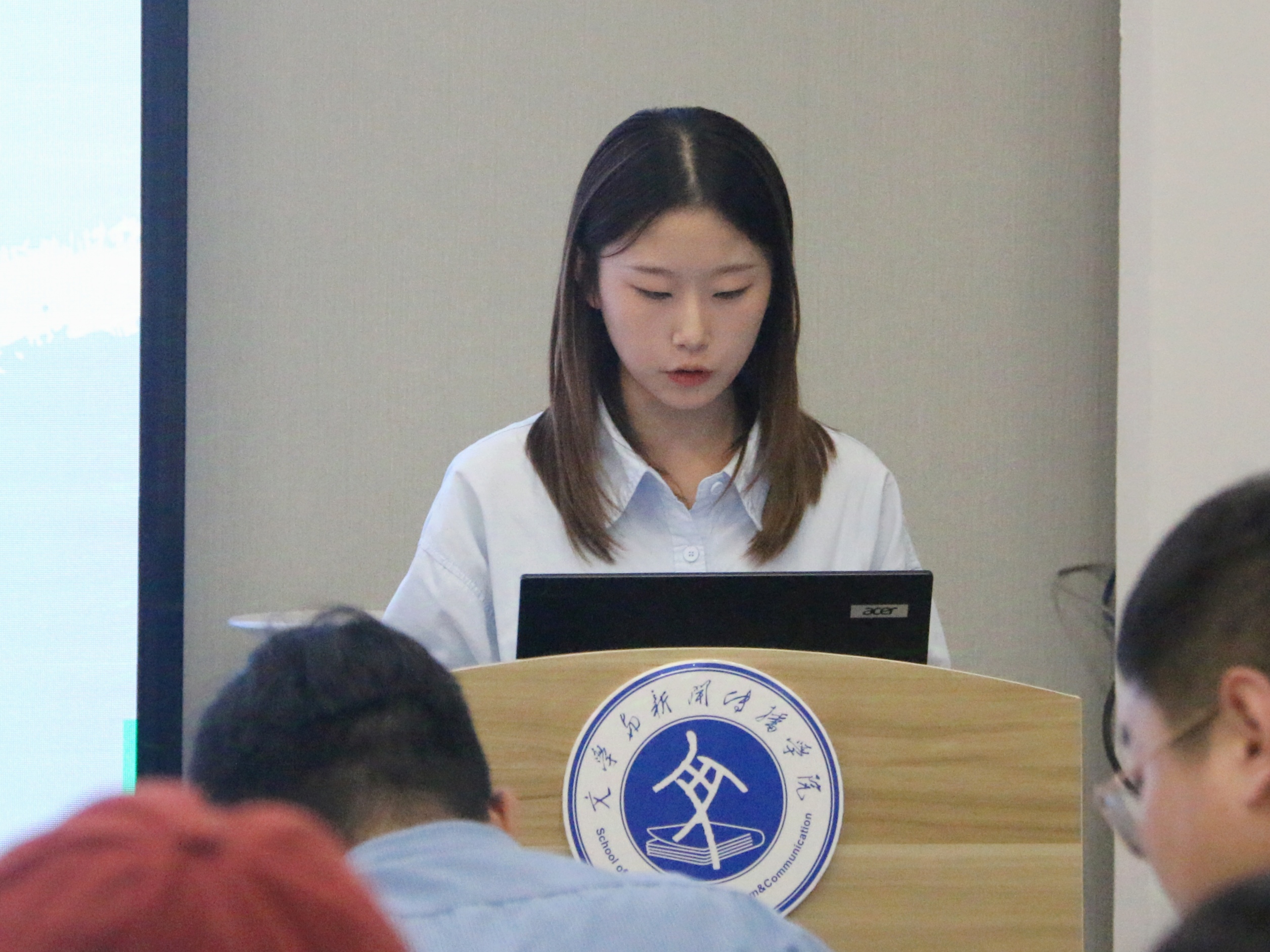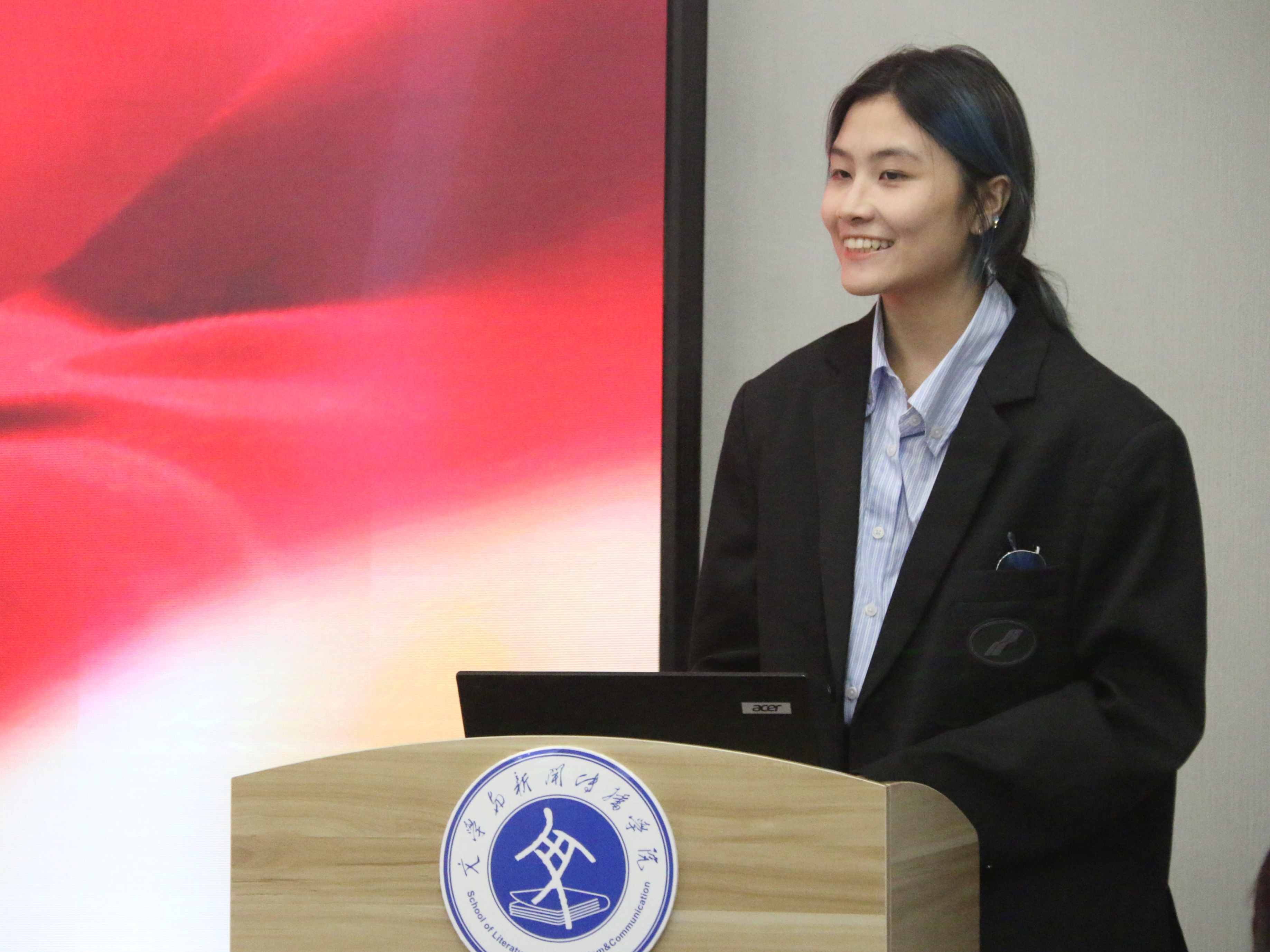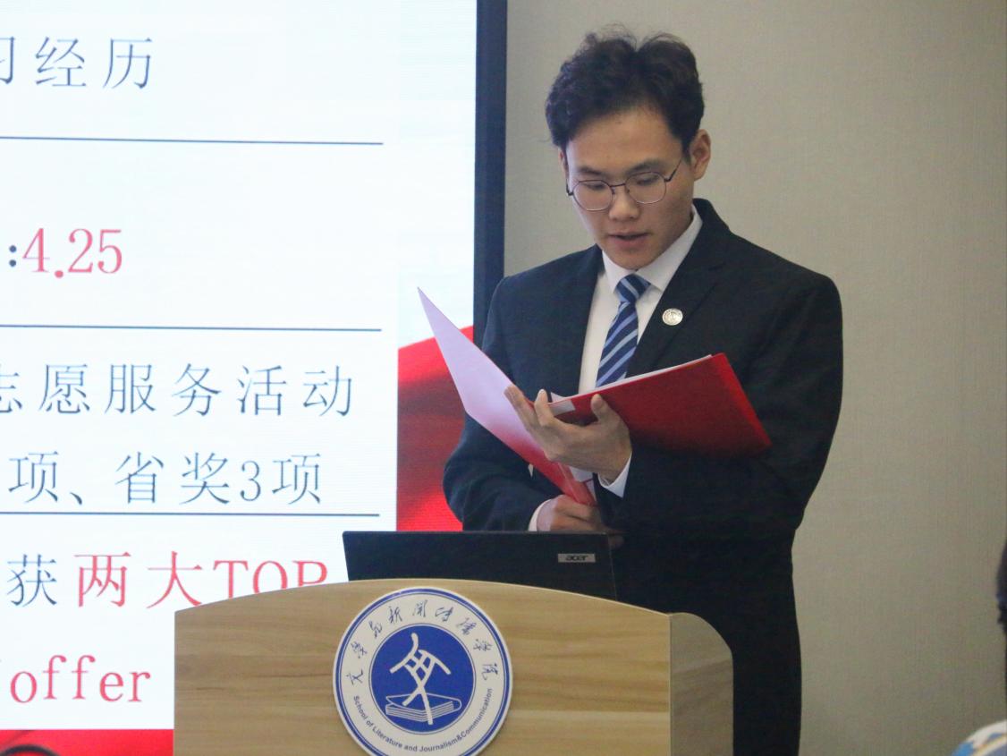 答辩会伊始,主持人介绍了此次奖学金评选规则及要求,根据《山东省本专科生国家和省政府奖学金实施细则》要求,经个人申报、班级评议、公司初审等环节,最终决出的十一位候选人在现场分别从思想品德、学习成绩、社会实践、获奖情况以及志愿服务等方面进行个人展示,分享了自己在学习、实践中的丰硕成果,展现了积极参与志愿服务的无私奉献精神,博得了阵阵掌声。现场气氛热烈欢快,评委老师们对同学们的表现给予了充分的肯定。同学们自信、落落大方的姿态,展现了文院优秀学子的青春风采。