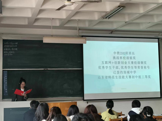 接着,范潇艺为大家带来在就业方面的宝贵经验。她从自身经历讲起为同学们提供借鉴和思考,她以师范生技能大赛为依托分别从备课,讲课,板书设计以及备课感悟等方面进行详细阐述,例如课堂问题设置要有引导性、讲课要抓住重点明确目标、板书设计简洁明了、课后也要及时反思总结等。最后范潇艺也建议大家在日常学习生活中认真学习,积极探索,尝试吸取优秀学长学姐们的宝贵经验。